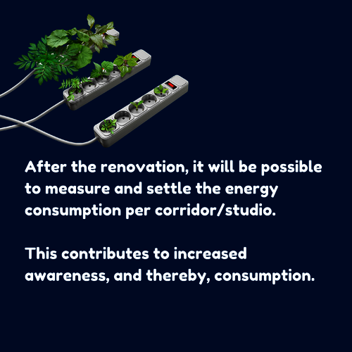 - Additional insulation will be added to the facades. We also provide extra insulation on the roofs and floors of the PhD-studios.