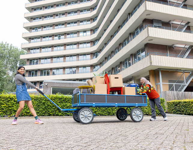 Verhuizen of spullen te vervoeren? Maak gebruik van onze bakfiets (65 bij 150 cm) of handkar.